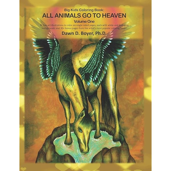Big Kids Coloring Book All Animals Go To Heaven Vol One 37 Line Art Illustrations On Both Dark Gray And White Backgrounds And 30 Bonus Pages Coloring Books Big Kids Coloring